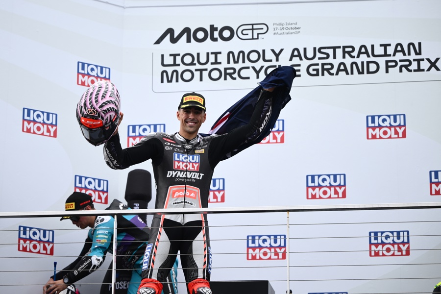 Senna Agius, compañero de equipo del líder del mundial, Manuel González (Kalex), suma su segunda victoria de la temporada y asciende una posición en la tabla de puntos, en detrimento del español Albert Arenas (Kalex), que fue octavo.