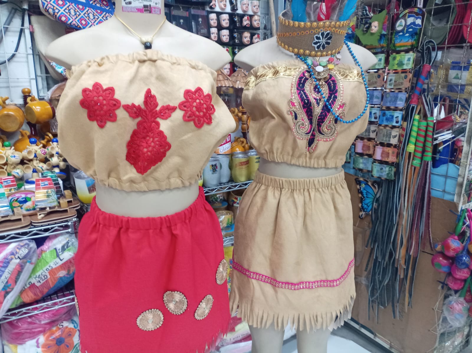 Por su parte, Mayerlis de los Ángeles Sequeira, otra comerciante del mercado, indicó que han reforzado su oferta con trajes de india para niñas, falditas, camisas, penachos, arcos y flechas, además de calzado artesanal.