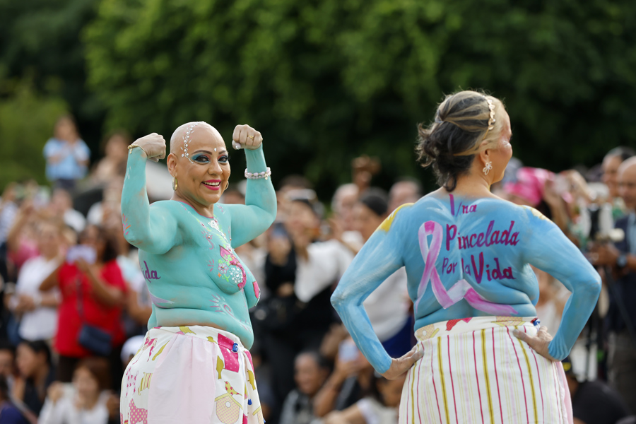 Sobrevivientes de cáncer de mama en México desfilan con bodypaint para dignificar su lucha