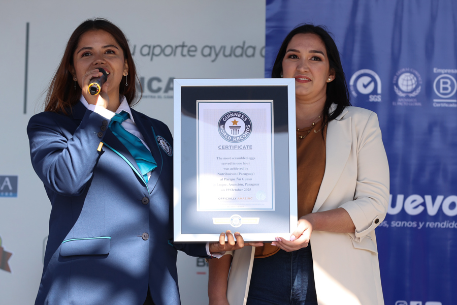 La representante del Guinness World Records, la colombiana Natalia Ramírez, certificó el logro obtenido por una empresa en el Parque Ñu Guasú en la ciudad de Luque, vecina de Asunción, a propósito de la celebración del Día Mundial del Huevo, que se conmemoró el pasado 10 de octubre.